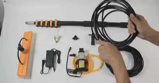 Den er testet ut av profesjonelle vinduspussere i over tre år i Norge med gode tilbakemeldinger. Adapter sett gjør at de kan brukes til vinduspuss, fasadevask, maling, inspektion med endoskopisk kamera mm. Slangen trekkes inne i stanga. Slange og koblinger må kjøpes separat.